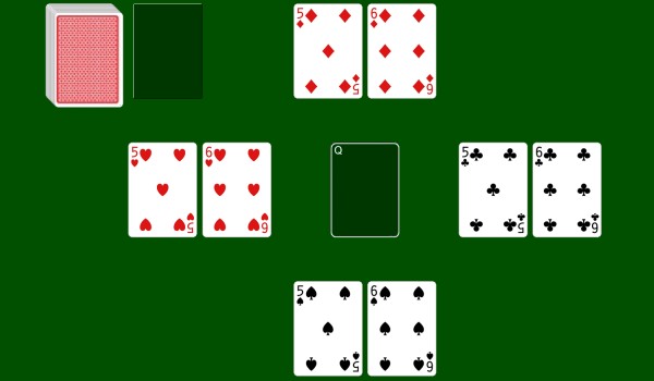 A player may only use one hand to move a card and may only play one card at a time. Players then alternately build up 5 stacks to form the tableau. The dealer shuffles the deck and passes out all of the cards one by one to them and the other player.